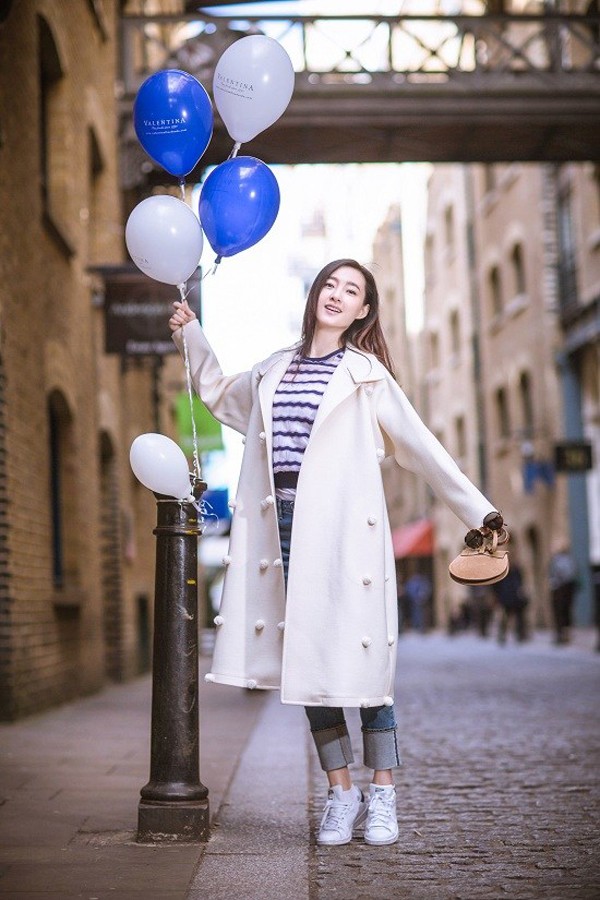 王丽坤手持蓝色气球漫步伦敦老街 回眸浅笑尽显恬静优雅东方女神邂逅英伦古巷 蓝色气球点亮静谧街角光影交错间展露精致侧颜 静谧沉思散发文艺气息倚靠古朴砖墙悠然自得 简约穿搭演绎街头时尚轻盈转身笑靥如花 蓝白气球伴随步伐摇曳生姿漫步石板路遥望远方 清新气质与古老城市对话